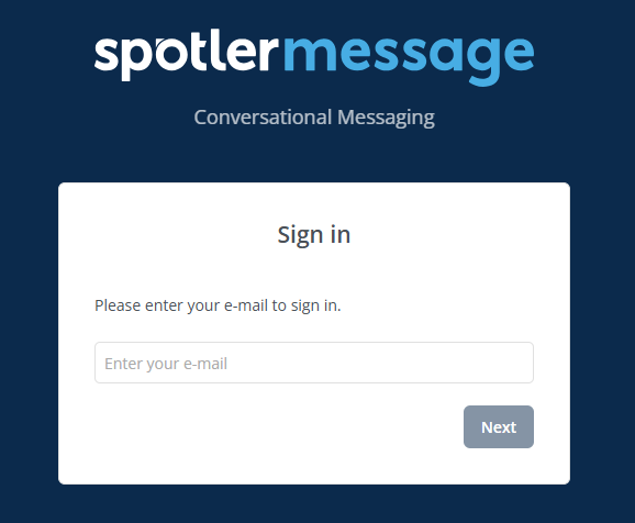 Go to the original login page of Spotler Message. Here, you're prompted to enter your existing email address used to log in to the software.