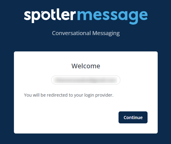 Click on Next and you will see a window stating that you will be redirected to your login provider, such as Spotler ID.